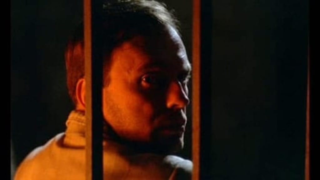 In the final shot, Marcello sits in a small, grate-enclosed space, illuminated by a flickering fire. He turns to look back, but he doesn't look at Lino. He looks at us.
